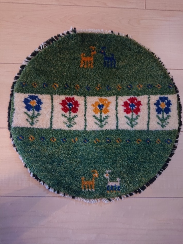 ギャッベ丸(ベンチ・チェアサイズ)グリーン色 お花