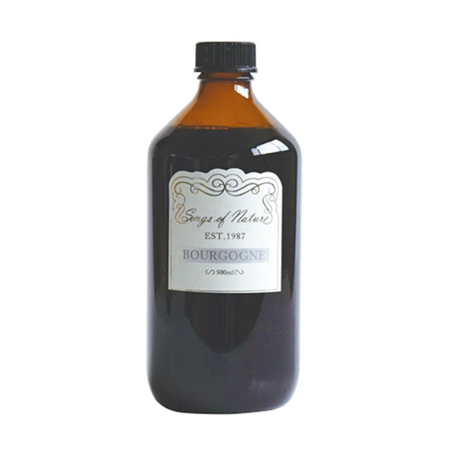 【ブルゴーニュ 】 『ワイルドストロベリー、ラズベリーリーフなどのベリーミックスに、レッドローズ、ポメグラネイトを加味。さらにベースノートにローズウッド、マホガニー、アンバーのブレンド。味わい深く格調高いブルゴーニュワインをイメージした香りです。』 カラフェに最高級のワインを注ぐように上質フレグランスオイルを注ぎ込んだディフューザー。 内容量:500ml 芳香期間:6ヶ月(期間はご使用される環境、使用方法によって異なります。) ・香料の性質上時間の経過と共に色が変わる場合がありますが、品質に問題ありません。 ・気温の変化により、まれに微少の浮遊物がみられる場合がありますが、品質に問題はありません。 主成分:エッセンシャルオイル、フレグランスオイル 使用方法:容器の中栓をはずし、スティックを挿してご使用ください(スティック別売り)。 使用上の注意:肌や衣類につけないようご注意ください。火気に近づけないでください。容器が転倒しないよう平らで安全な場所でご使用ください。高温多湿直射日光を避け、乳幼児の手の届かないところで保管してください。 【ご注意】パソコン環境によって、実際の色味と多少異なる場合がございます。 ご了承くださいませ