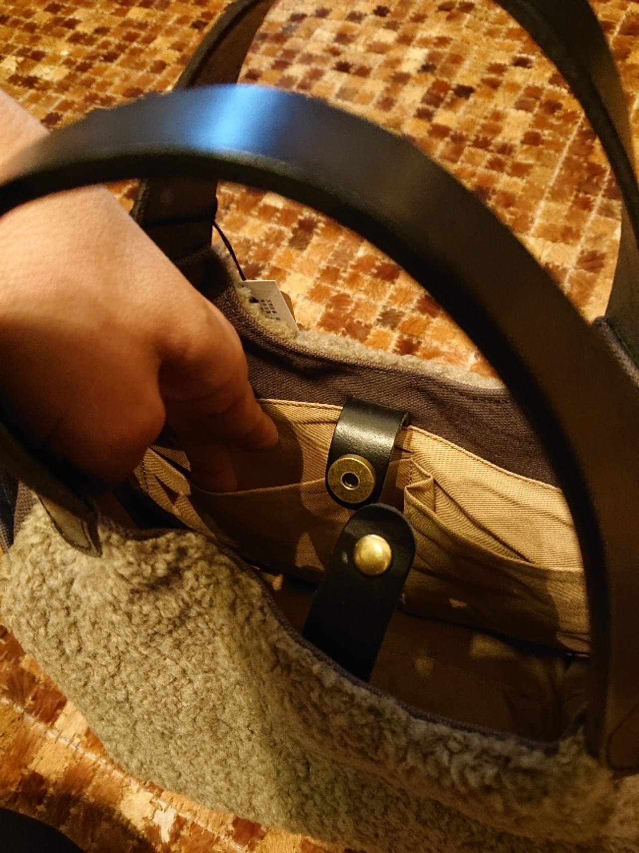 両サイドにポケットもございますので、スマホやパスケースなど